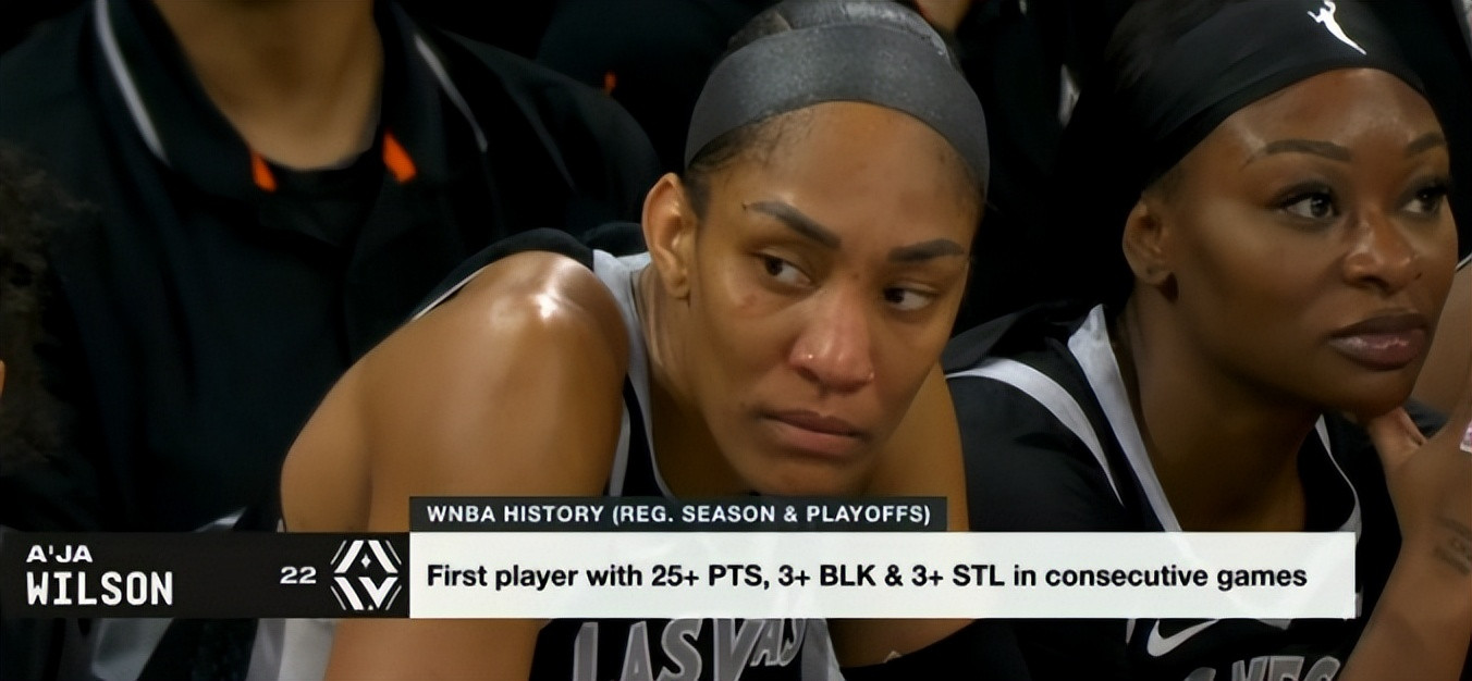 阿贾-威尔逊成为WNBA历史首位连场轰下至少25分3抢断3盖帽的球员(常规赛+季后赛)。