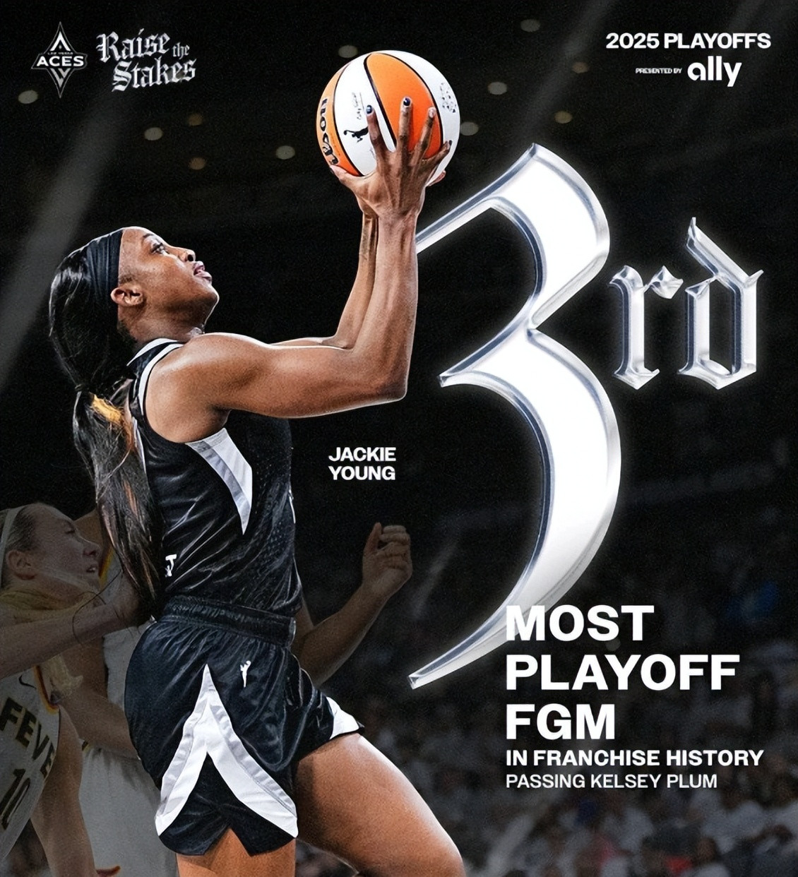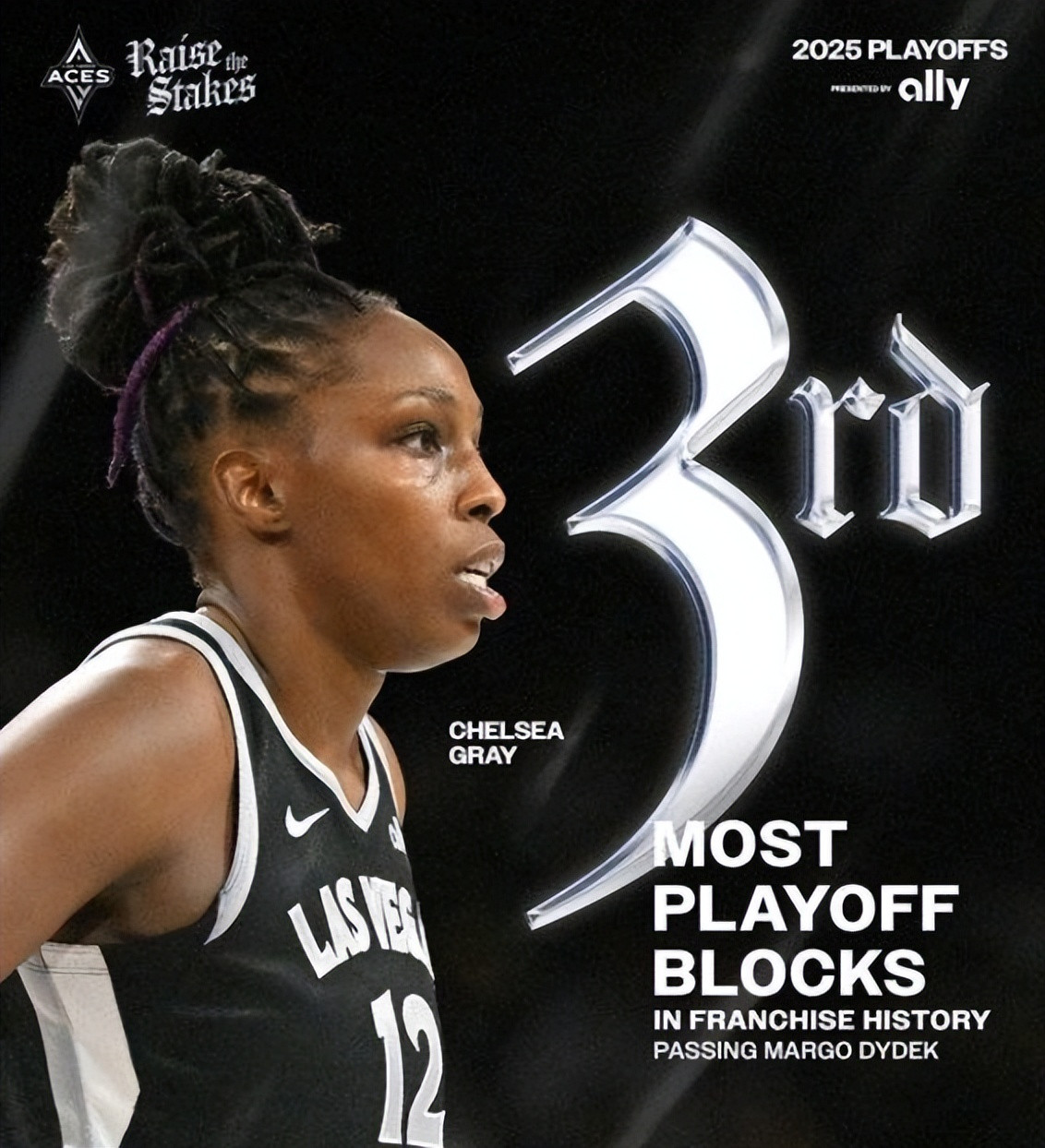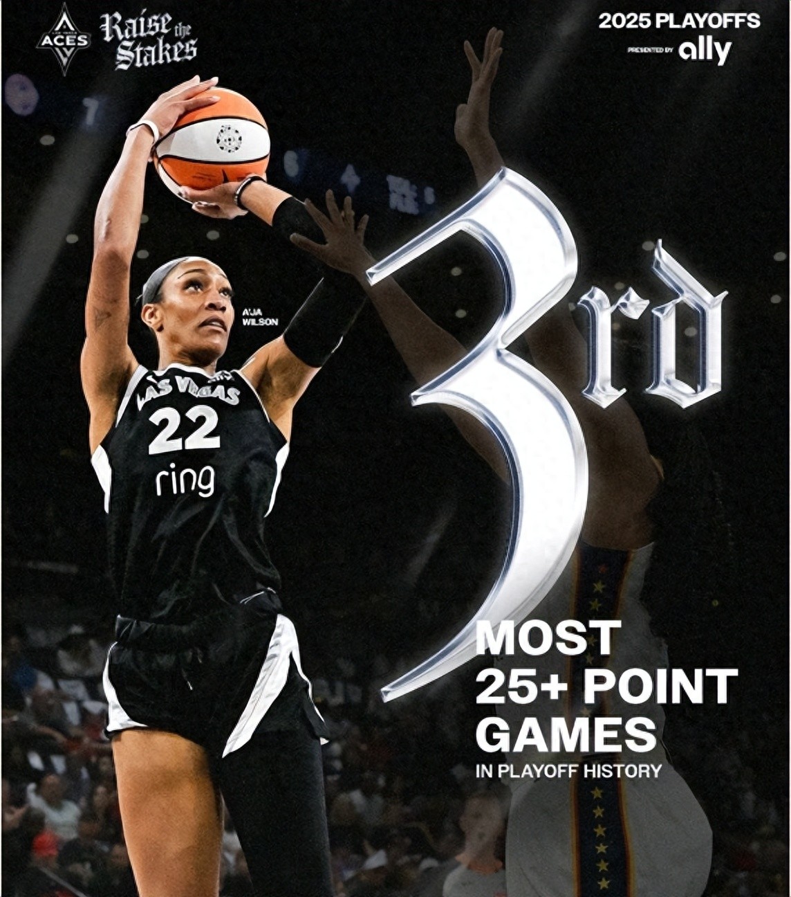 阿贾-威尔逊季后赛25+场次升至WNBA历史第三位。