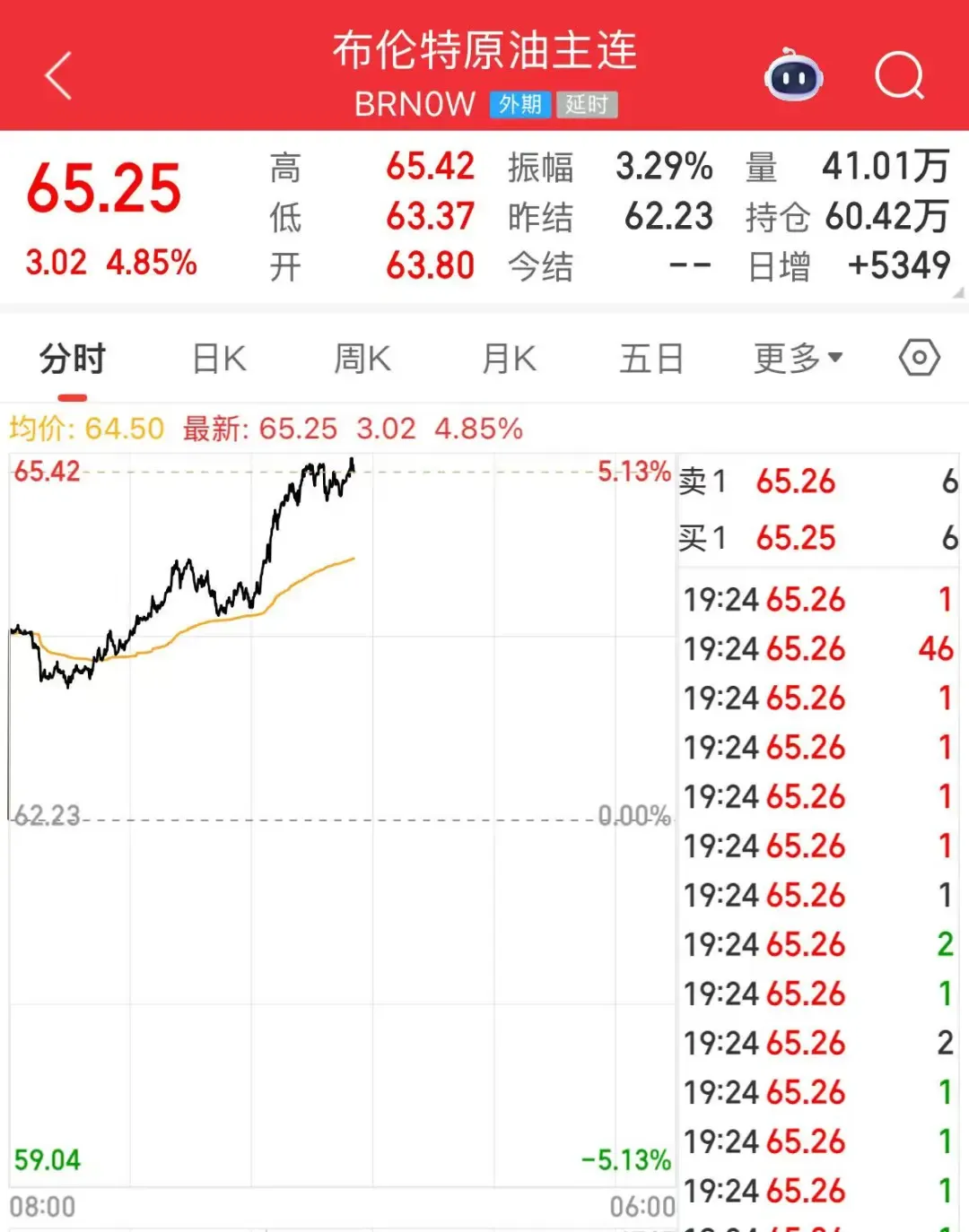 10月23日,国际油价持续走高。截至北京时间19:30创元网配资,WTI原油期货涨幅超6%,报62.04美元/桶。布伦特原油涨4.85%,报65.25美元/桶。