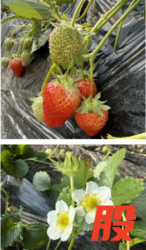 红彤彤的草莓挂满枝头,果形匀称、色泽诱人。